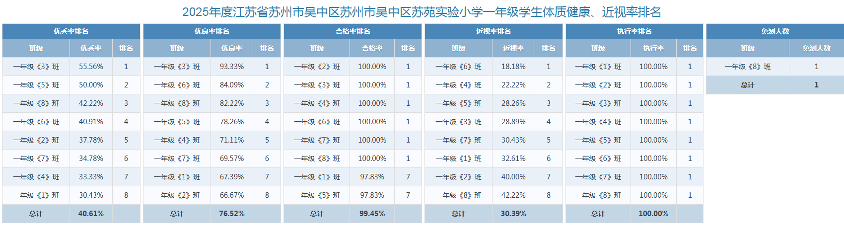 2025年苏苑实验小学体质健康、近视率排名情况