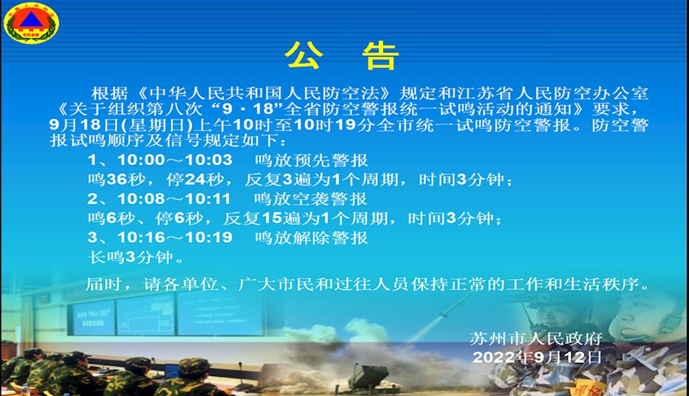 2022.9.18警报试鸣公告